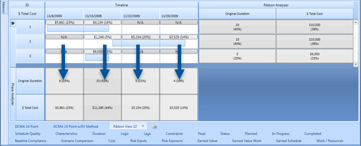 This makes phase-based analysis very powerful because you can analyze both within and across defined phases, accounting for the amount of cost, duration, and work that falls into each phase.