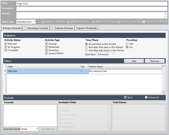 The screenshot below shows an example of a metric called High Cost being defined using the variable My Unknown Cost.