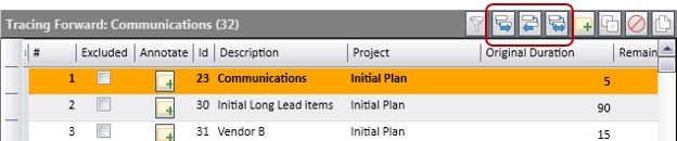 • Select an activity then use the Logic Trace commands in the Activity Browser. You can use these commands as a fast-track means of running a logic trace by selecting the activity in question and using the commands to trace forwards, backwards, or in both directions.
