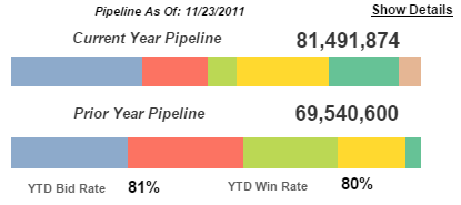 In addition, the year-to-date bid rate and win rate display below the pipeline charts.
