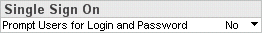 To use single sign on authentication, select No in Prompt Users for Login and Password under Single Sign On.