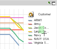 If a chart legend contains too many items to display the complete list, scroll arrows are displayed next to the legend. Click