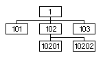 Fixed Form Significant codes rely on the length of the code to represent the structure level. In the figure below, 10201 and 10202 are level 3 codes and are children of 102.