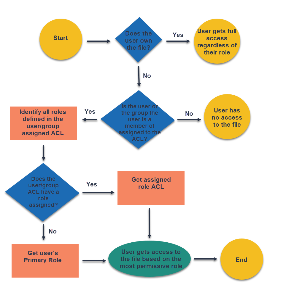 This diagram illustrates how access to the file is determined based on the access control assigned to the Cobra file.
