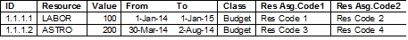 Resource This value is available only when you are importing data from a single file. This value corresponds to the resource assignment for the selected cost set or class type.