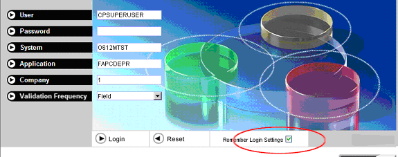 Note: You can save the User ID, System, Application, and Validation Frequency from your login settings, but you cannot save your Password.