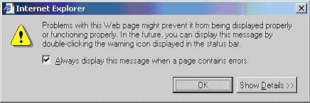 If you double click on this tiny icon, you can view the full error dialog, as follows: