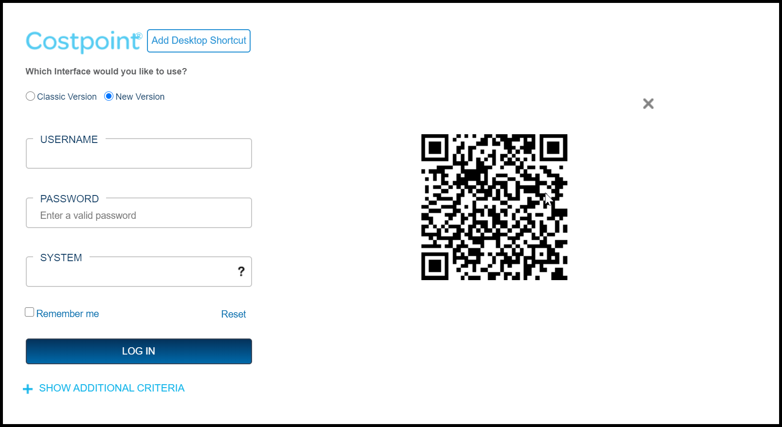 Use a QR code to automatically open the Costpoint Login page on your mobile device or to share its location with other users.