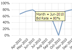 To see the bid rate data for a specific data point, position the mouse pointer over the intersection of the chart line and the grid line for the time segment. When you do, Capture Analytics displays the month, quarter, or year and the bid rate.