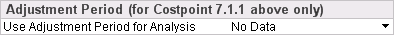 Note: This configuration setting only applies if you are using Costpoint Analytics with Costpoint 7.1.1 or a later version. If you are using an earlier version of Costpoint, No Data must be selected in Adjustment Period.