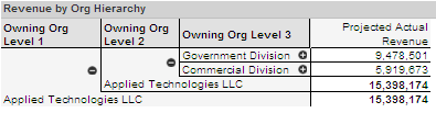 Focusing a table in this way actually changes the corresponding filter values. For example, if you select a specific organization in a table column, it changes the organization filter. As a result, focusing a table changes not only that table but all other analytic objects on the tab that are subject to the affected filter.
