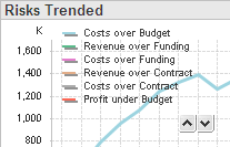 Example: If you click Profit under Budget in the Risk Reason column, as shown here, the table focuses on the two rows with Profit under Budget in that column.