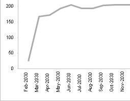 To see the precise value represented by the intersection of a plotted line with the vertical grid line for a horizontal axis value, position the mouse pointer over the intersection point. Costpoint Analytics then displays the intersection value and related information in a data box.