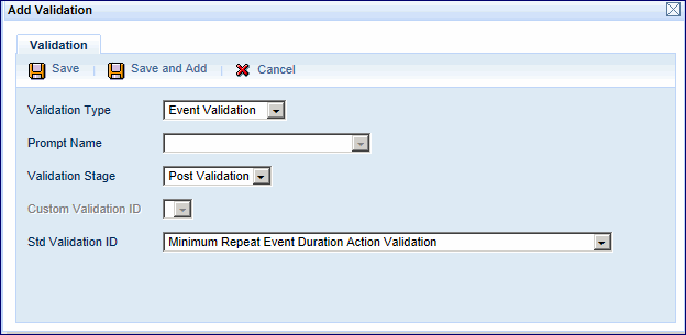 From the Std Validation ID field, select Minimum Repeat Event Duration Action Validation.