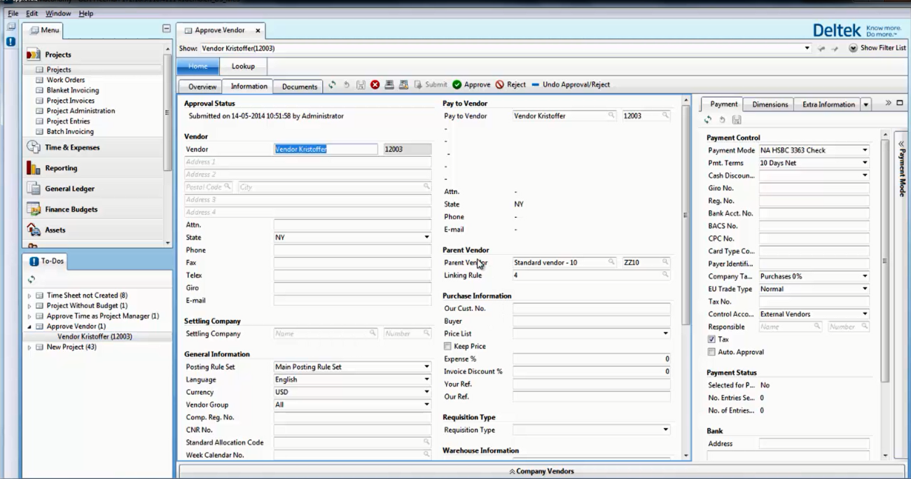 Use the Approve Vendor workspace to approve a vendor, and move it from one status to the next one.