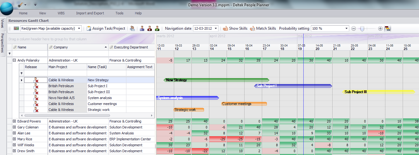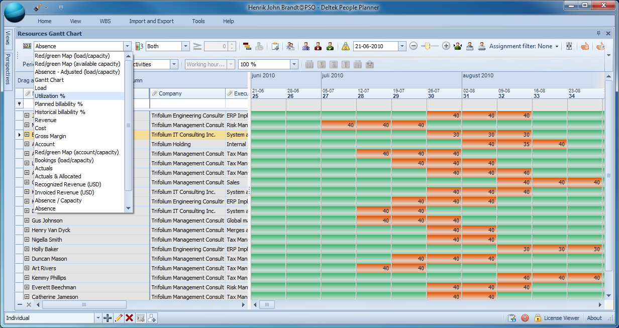 Department managers can view the capacity of their resources in the Resource Gantt Chart.
