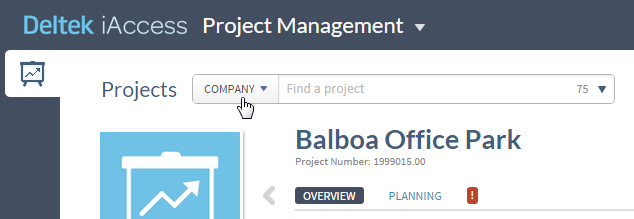 Key information and options for the current project always remains visible at the top and along the left side of the Project Management workspace as you move from one tab to another.